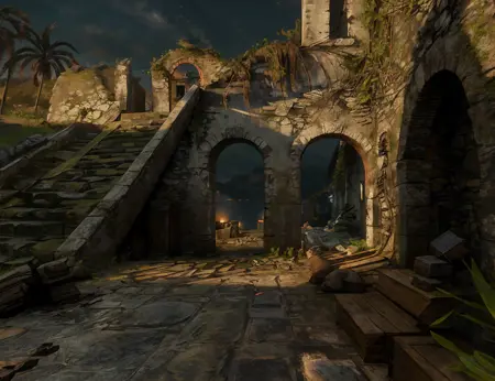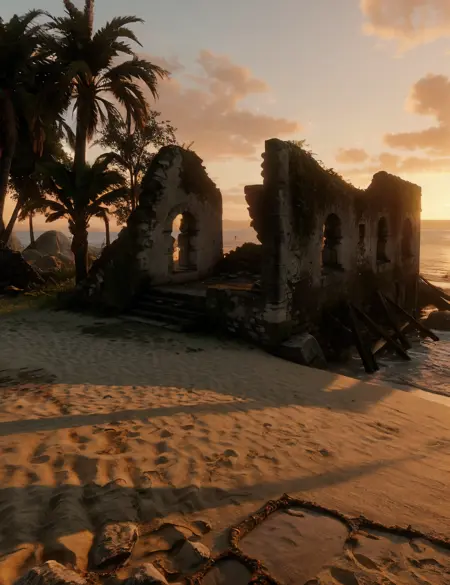 (フィクションの)熱帯島グアルマは、『レッド・デッド・リデンプション2』の第5章の舞台です。グアルマはカリブ海のサトウキビプランテーションと、1世紀前に存在したスペイン植民地の遺跡で知られています。海岸沿いの要塞が湾を守り、近くの砂浜にはレンガと石でできたアーチの遺跡が散らばっています。侵食する熱帯雨林がかつて奪われたものを取り戻そうとしており、今ではヤシの木やツタが瓦礫から生い茂っています。