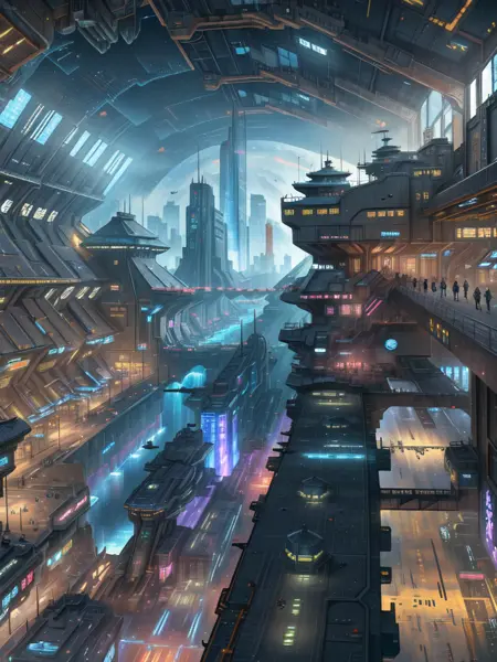 这是一个具有赛博朋克与太空氛围的背景LoRA,是特别版,我希望它拥有更细致的细节。