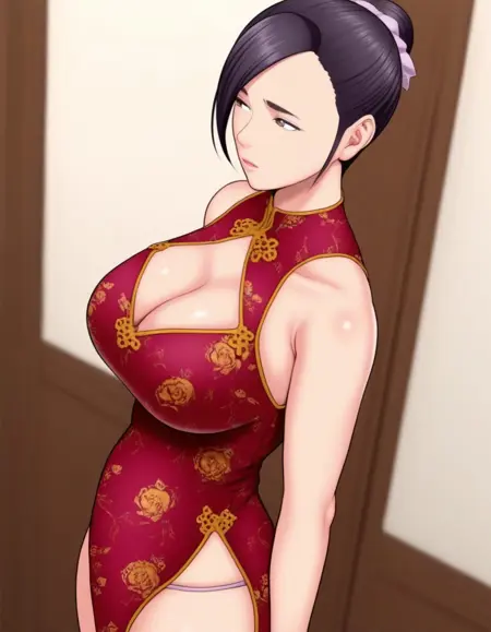 mature_female short_hair brown_eyes black_hair large_breasts Rean_Needle