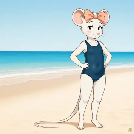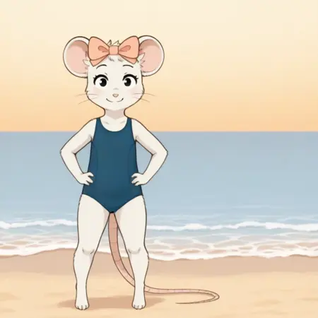 rodent, mouse, mouse girl, white fur, black eyes, mouse ears, mouse tail, whiskers, Hair bow,