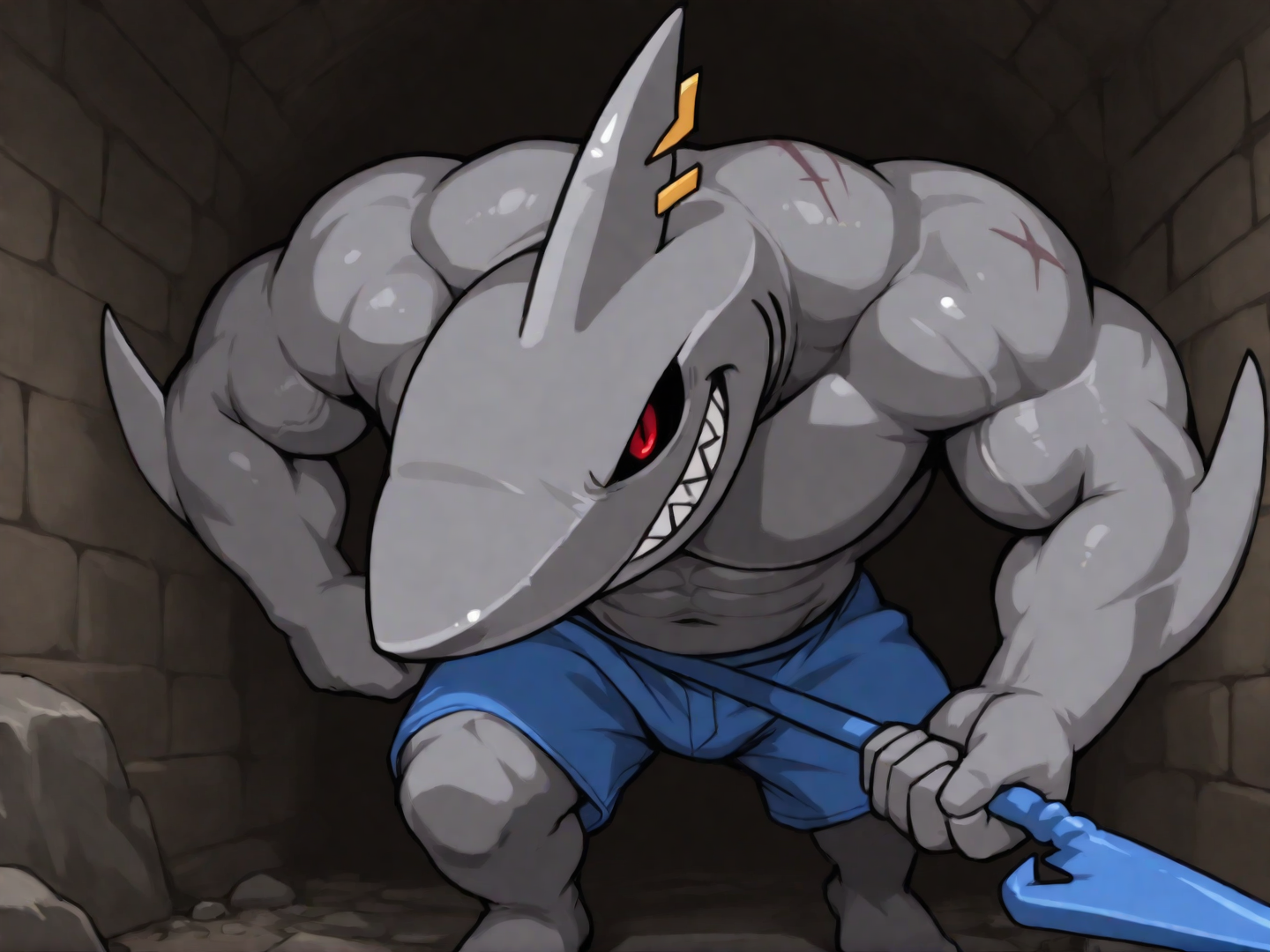 インディーゲーム『Everhood 2』に登場する変異したシャーク、Bloodnose