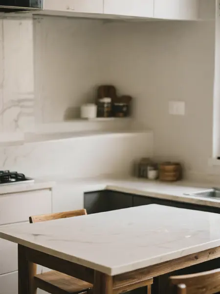 background, gas stove, white cabinets, black cabinets, and a window,photograph of a minimalist kitchen with a white countertop, wooden chairs,photograph of a modern kitchen with a white marble countertop, dark cabinets, gray cabinets, wooden chair,