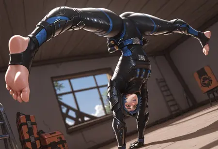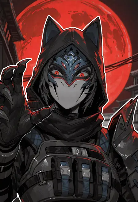 当然,如果你提示她佩戴了面罩或兜帽,则不要使用任何面部/头部描述,例如“紫色嘴唇”或“发带”等。