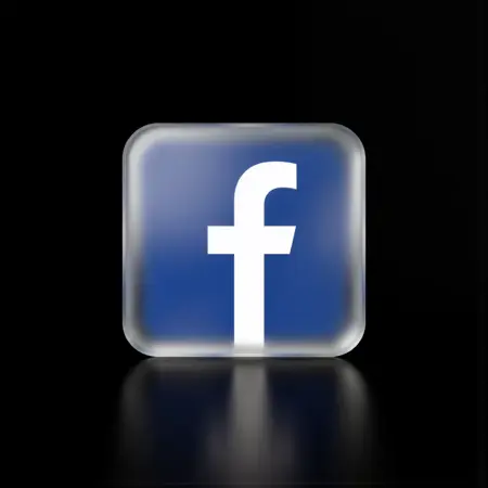 IOS26_APP,Facebook图标,磨砂玻璃材质,方形,立体感,阴影,白色背景,正面视角