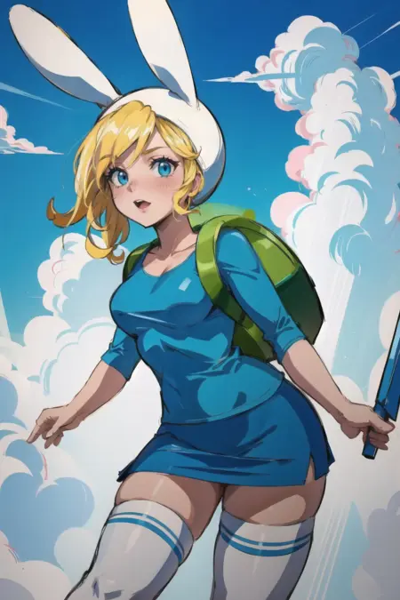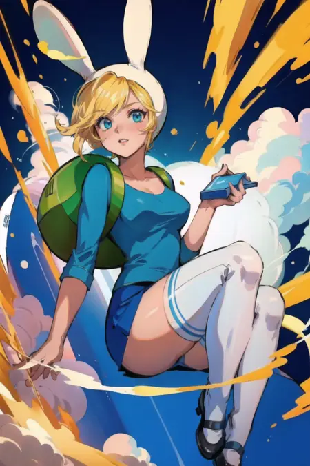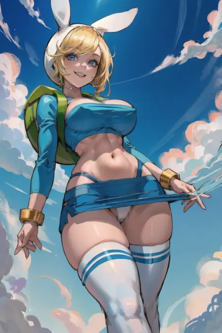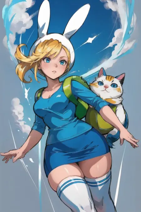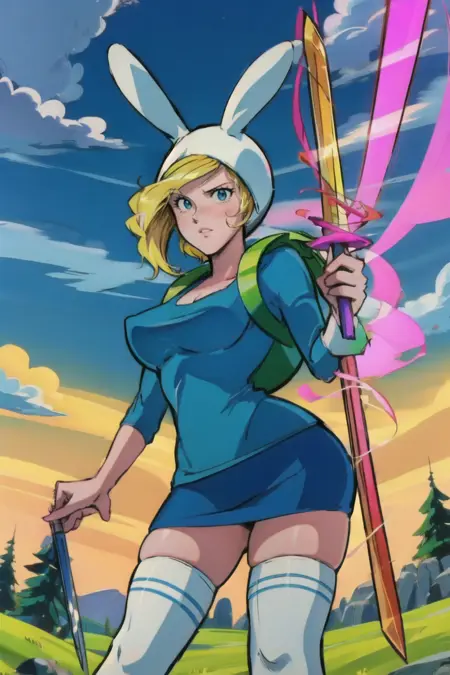 "Fionna" trigger, your choice of her Adventure Time fit or the work uniform. Bit overcooked, recommend ~0.8 strength.