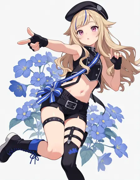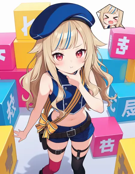 铃木雏·经典反转.ver suzukihinaB,midriff,streaked hair,flipped bangs,sleeveless ,uneven legwear,