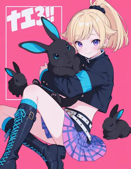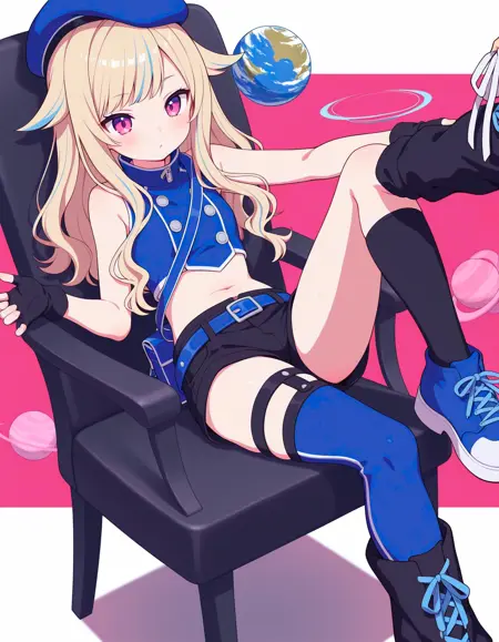 铃木雏·3分GIRLS.ver suzukihina3min,midriff,blonde hair, flipped bangs,socks, ponytail, knee boots, skirt,