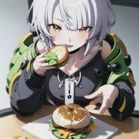 eating burger,