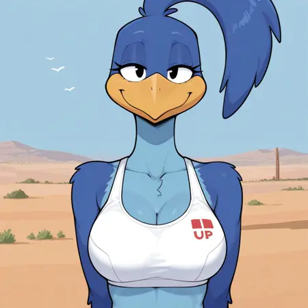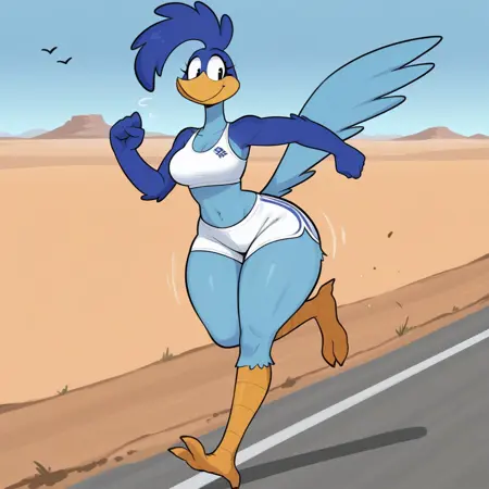 Roadrunner(character), bird, anthro, female, blue body, no humans,