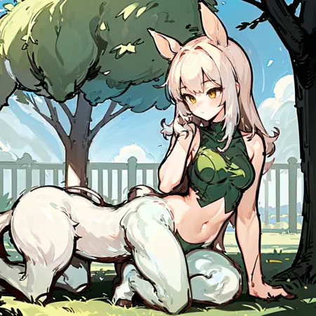 (masterpiece, centaur, centaur girl, taur, abdomen:1.4), epona_head, epona_ears, epona_hairstyle, epona_tail, epona_body in prompts and