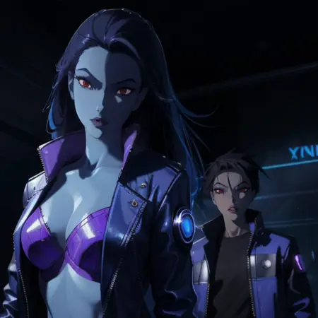 Without the trigger words "blue skin", "black hair" will be normal skin and red hair.