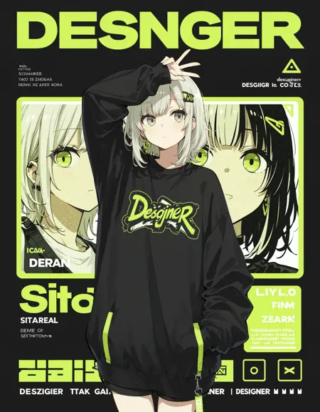 このLoRAは、キャラクターを含んだポスター風のデザインを生成します。クールなグラフィックデザインのショーケースで見かけるようなスタイルです。他のキャラクターLoRAと組み合わせても非常にうまく動作します。
