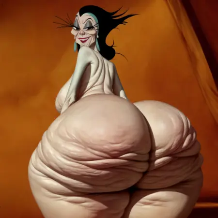 Yzma, skinny, elderly, woman, dark purple dress, black hair, wrinkled pale skin,
