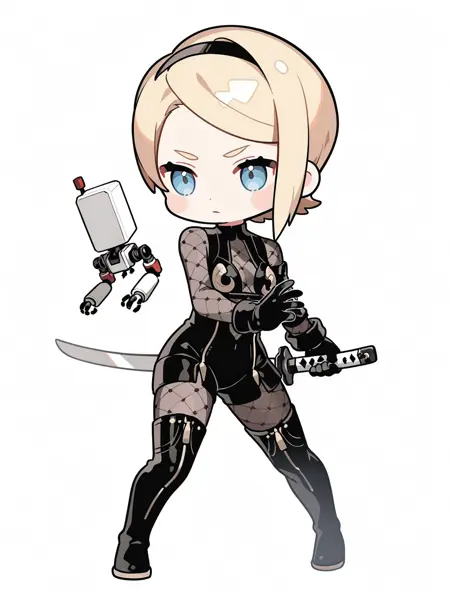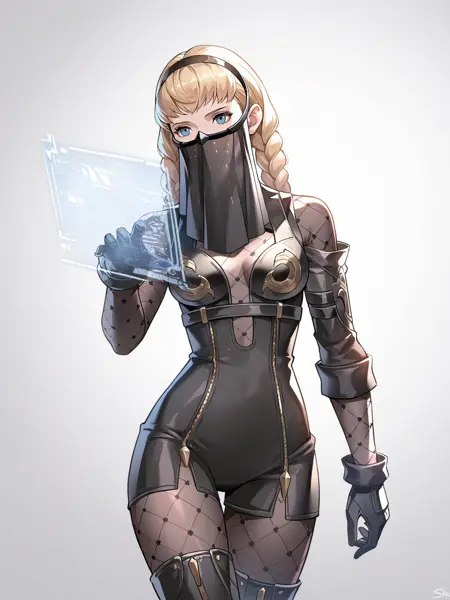 Recommended weight: 0.8. Model for the main Yorha Operators from Nier:Automata, 6o and 21o, the clothing is obviously the same and you can probably fit on other characters as well. Should be pretty consistent and flexible for styles. The hairband and mouth veil is a single piece, so it's probably better to remove both if you want the veil off.