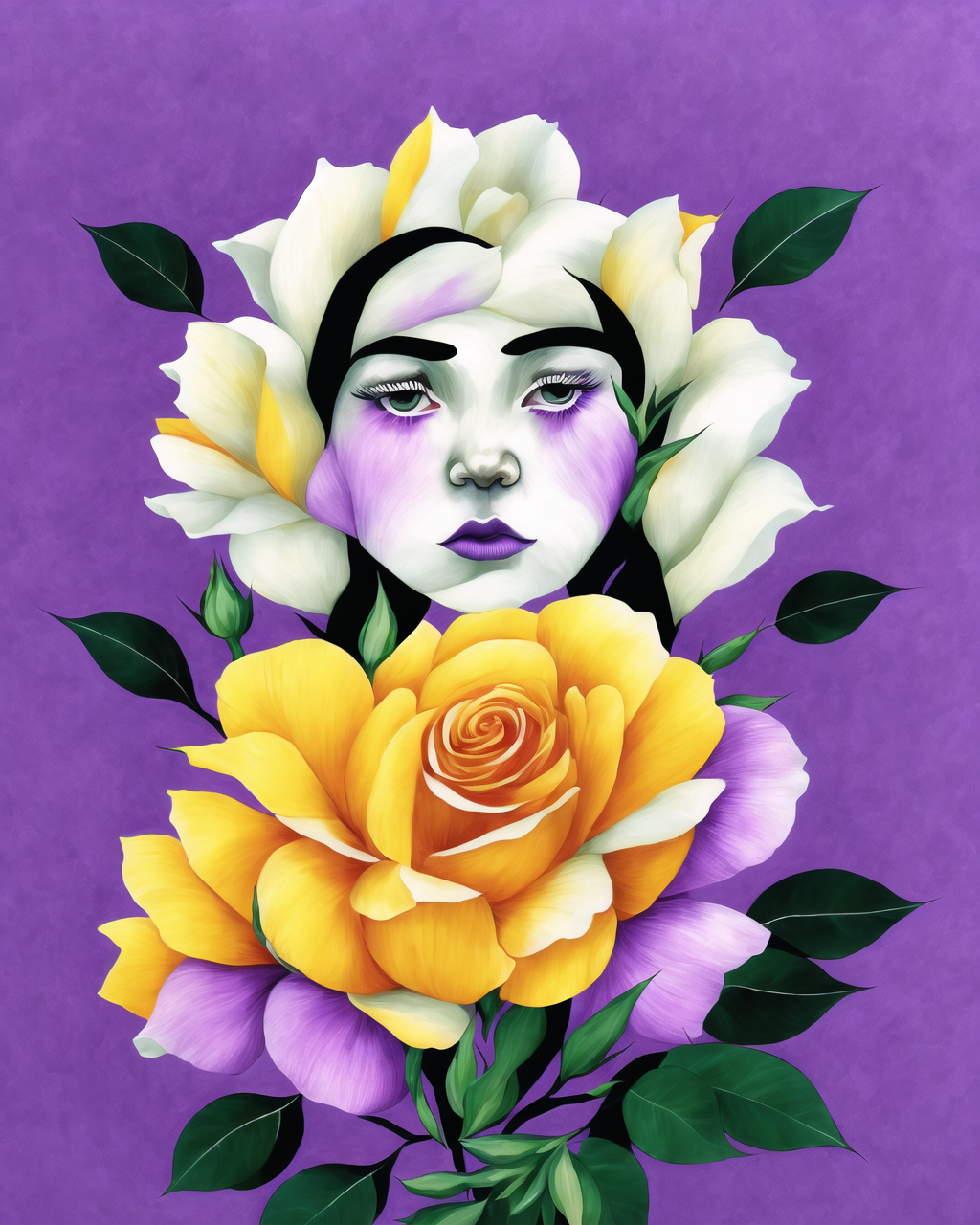 やや乱れたデッサン、スケッチのような線、そして非常に興味深い色の使い方が組み合わさったスタイルです。このスタイルはポップアートにインスパイアされており、鮮やかなパターンと丸い頬が特徴です。