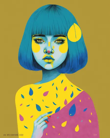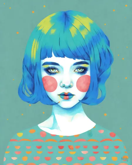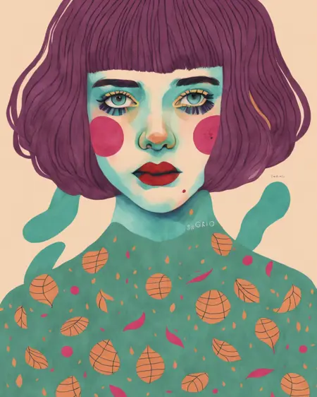 It is a mix of slightly messy drawings, sketch-like lines and a very interesting use of color. This style is inspired by pop art, it is also characterized by vivid patterns and round cheeks.