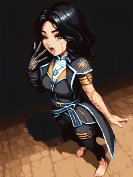 외모: lunecoephilon, 검은 머리, 갈색 눈, 얼굴 문신, 금색 문신,