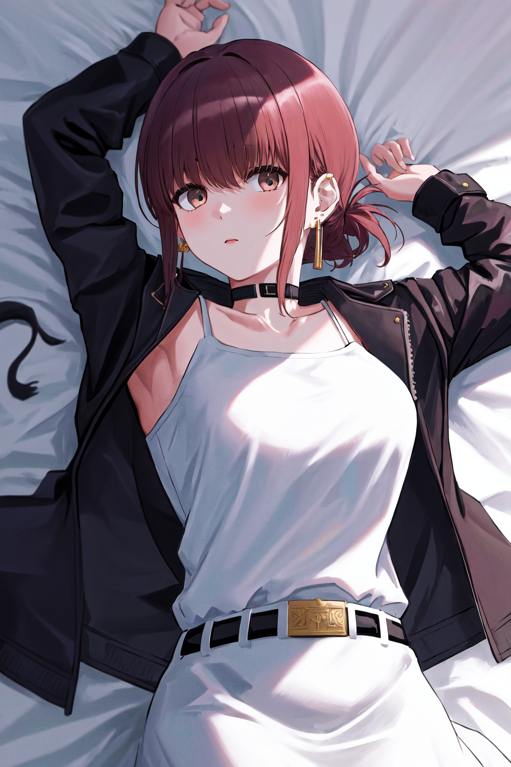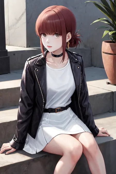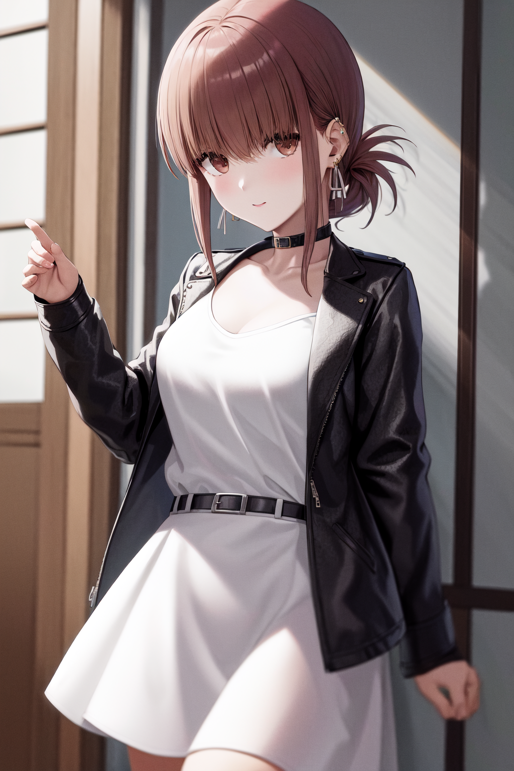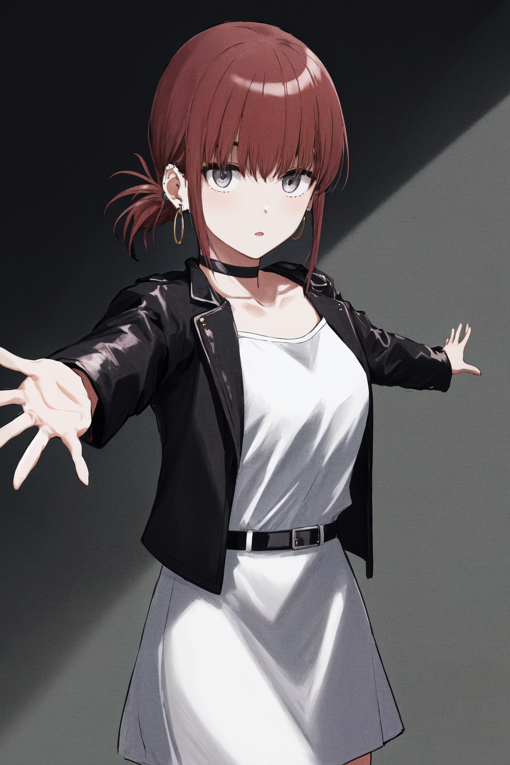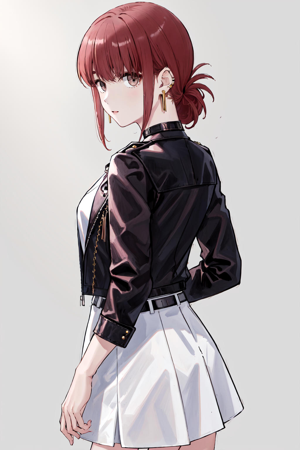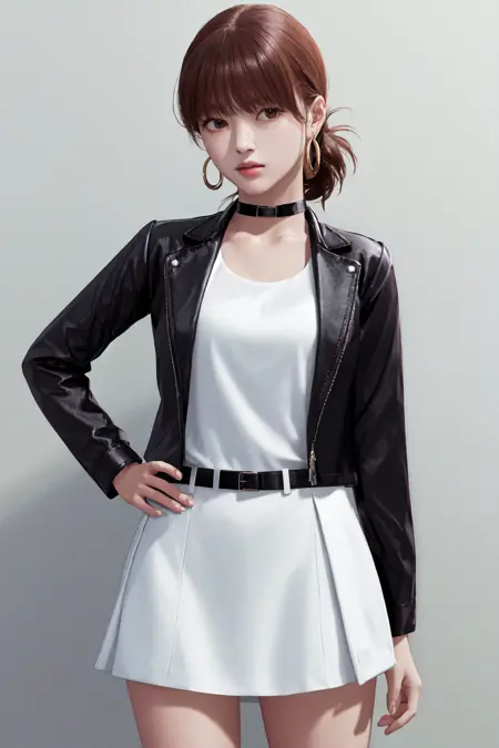 기본 옷차림: 검은 초크, 검은 재킷, 흰 셔츠, 벨트, 흰 드레스 치마