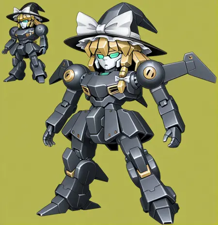 无需特定分辨率。通常需要对脸部进行修复以获得良好效果,这在机器人题材中是常见做法。比例完全不一致,就像真实的现代SRW一样。