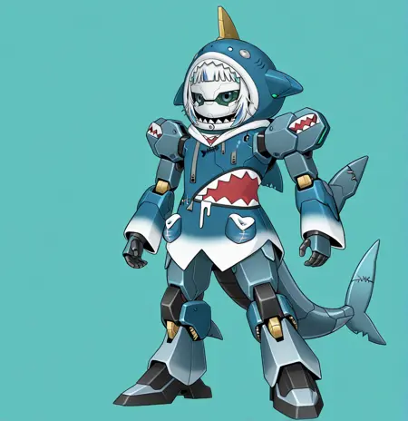 推荐标签:机器人、机甲、站立、全身、Q版、简单背景、单人、向前看、