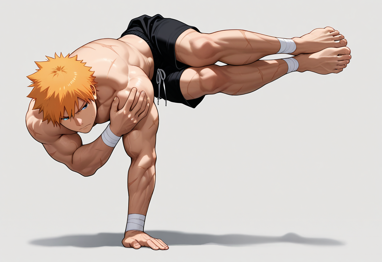 bakpos, one arm handstand,hand on own shoulder,full body, arm balance, bodyweight pose, dynamic pose, muscle flexing, acrobatic pose, side plank,