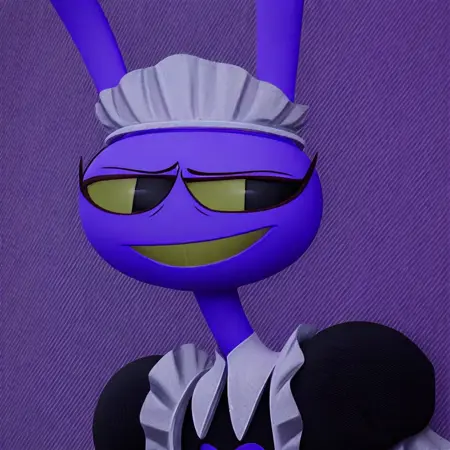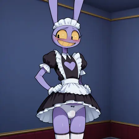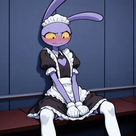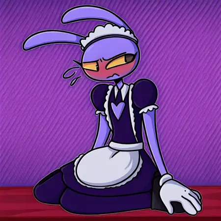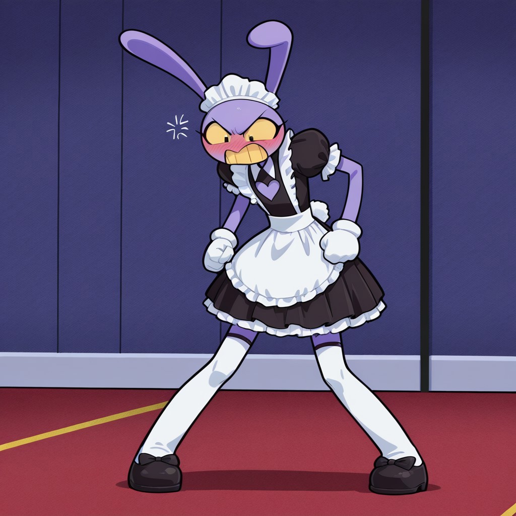 Jax(character), maid outfit, rabbit, anthro, purple body, yellow sclera,