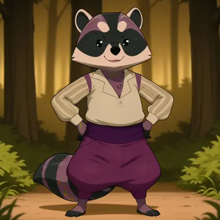 raccoon, raccoon boy, brown and black fur, black eyes, black nose, raccoon ears, raccoon tail,
