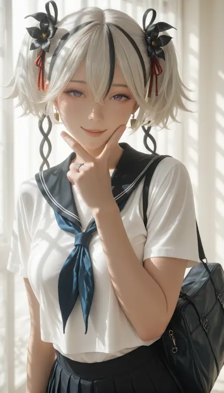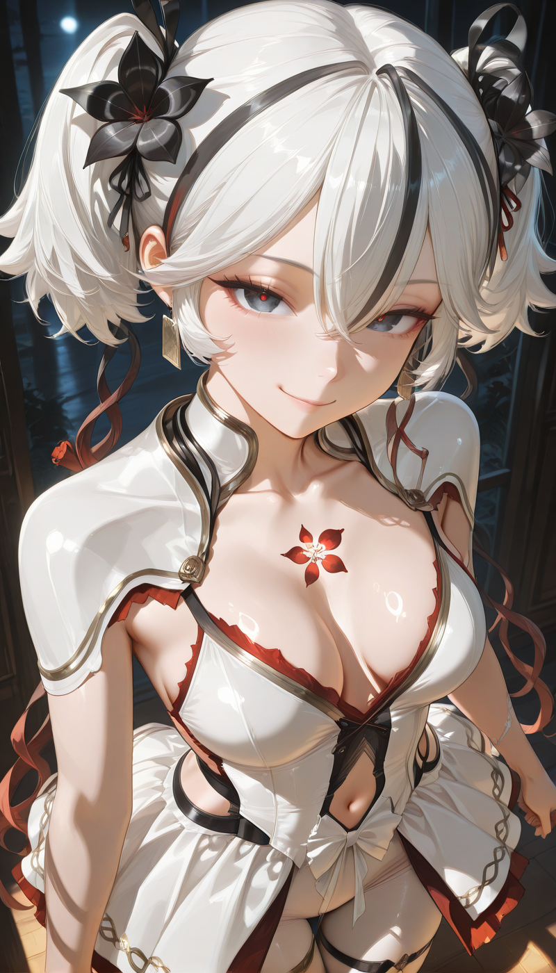 | 训练词汇 | WWCamellya, long hair, breasts, black hair, hair ornament, bow, ribbon, hair between eyes, jewelry, twintails, medium breasts, white hair, flower, multicolored hair, earrings, red hair, hair flower, black eyes, two-tone hair, streaked hair, grey eyes, crossed bangs, black flower, hair ribbon,已复制! gloves, dress, bow, navel, ribbon, cleavage, collarbone, pantyhose, sleeveless, elbow gloves, white gloves, white dress, clothing cutout, sleeveless dress, thigh strap, capelet, cleavage cutout, white bow, single thighhigh, white pantyhose, crossed bangs, armlet, single glove, thighlet, navel cutout, chest tattoo, single leg pantyhose, stomach cutout, thighs, detached sleeves已复制! |