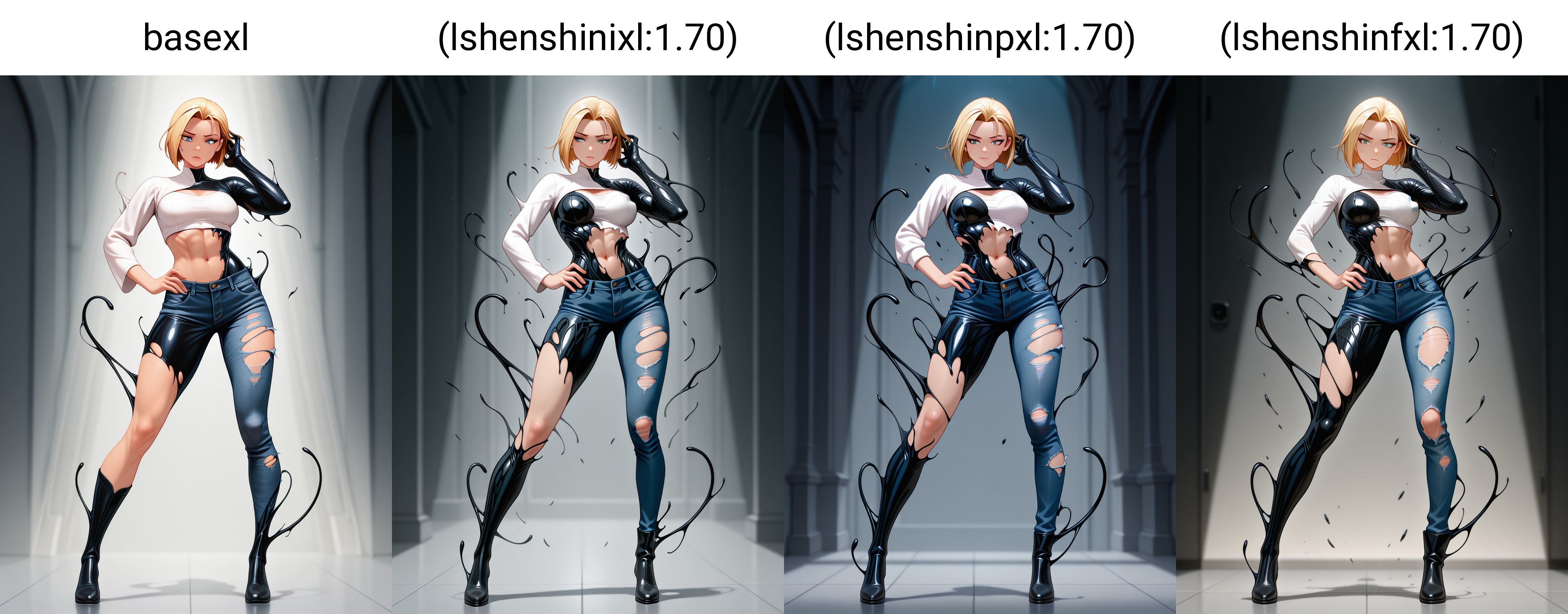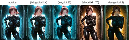living clothes,slime (substance),tendril,bodysuit,torn clothesThis LoRA frequently alters the face, especially nose structure and expression, and may shift body proportions depending on the base model or style LoRA used.