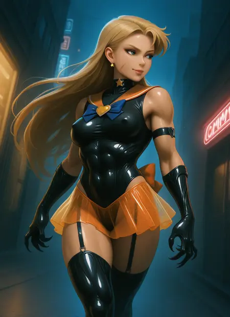 진흙(slime), 찢어진 옷, 또는 변형 프롬프트와 잘 결합되어 수트의 성장이나 부분적 융합을 시뮬레이션할 수 있습니다(실제 변형 로직은 아니지만 스타일적으로 효과적입니다).