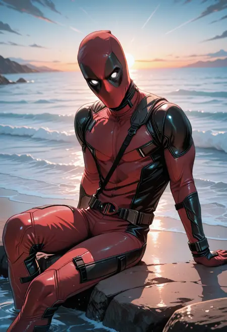 DPL, 1boy, male focus, white eyes, no pupils, red mask, red bodysuit, faceless