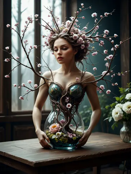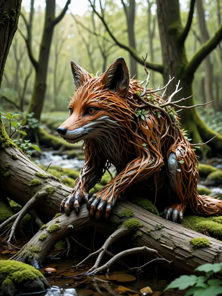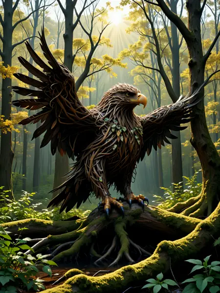由扭曲缠绕的枝条、苔藓、藤蔓等制成的物品。
