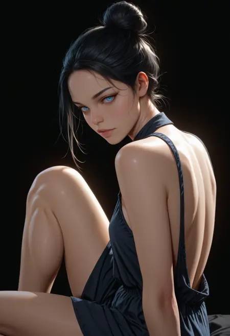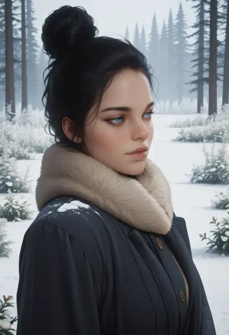 RDR2Abigail, 1girl, black hair, blue eyes, hair bun