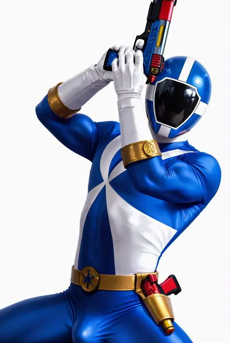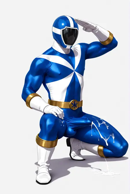 g0g0-v blue , 헬멧, 마스크, 바디수트, 벨트, 장갑, 흰 장갑, 토크사츠, 파란 바디수트, 흰 부츠
