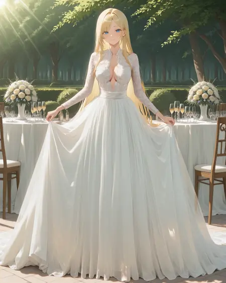 全身画像を生成する場合は、二重サンプリングまたは高解像度アップスケーリングを使用することをお勧めします。ウェディングドレスのスカートが非常に大きく、フレームの大部分を占めてしまうため、上半身と頭部に割り当てられるピクセル数が極めて少なくなり、ぼやけた仕上がりになります。