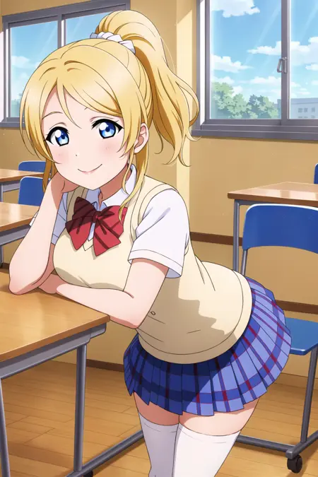 A LOCON for Stable Diffusion 1.5 of Eli Ayase from Love Live. This model was trained and tested on the Mistoon Anime model using Kohya SS.