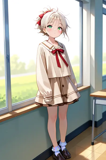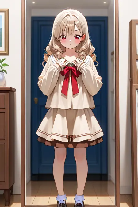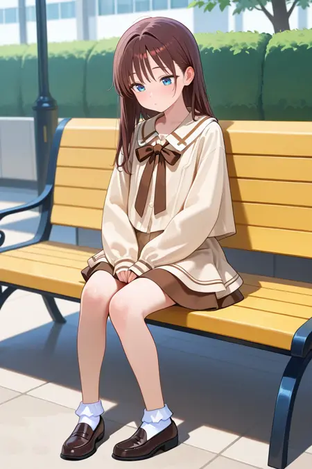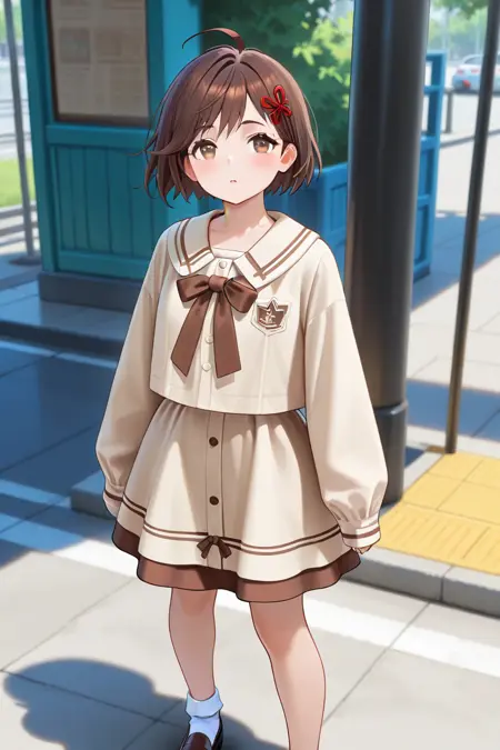 이 LoRA는 모카색의 세일러 칼라를 가진 캐주얼 복장을 재현하도록 학습되었습니다.