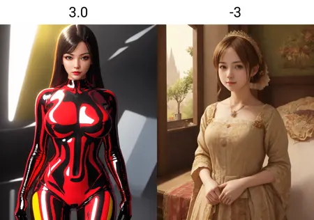 Positive values are shifted towards bodysuit, negative values are corrected towards traditional clothing.