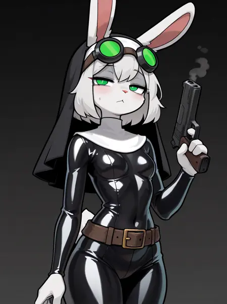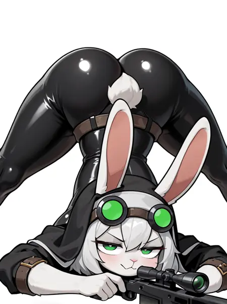 触发词:兔形动物、拟人化、女性、白发、短发、绿眼、眯眼、白毛、健美、小胸