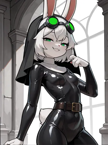 服装:头戴夜视镜、头戴眼镜、全身紧身衣、黑色衣物、修女服、修女、腰带
