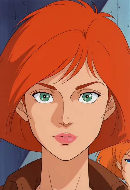 WOEICSIvy, 1girl, red hair, orange hair, short hair, bob cut, green eyes, lips,