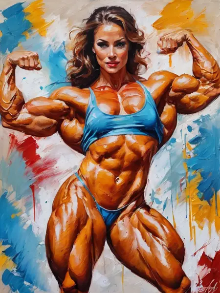 一个用于生成肌肉发达、胸肌平坦/乳房较小的女性健美运动员的LoRA。