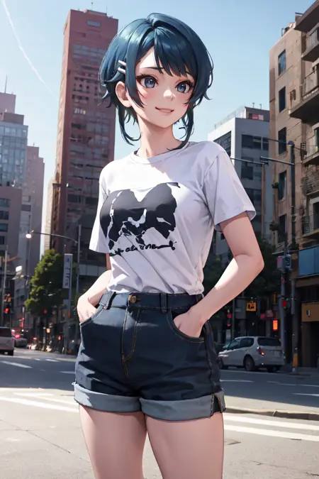 그녀의 기본 헤어스타일에는 "비대칭 헤어, 헤어클립"을 사용하세요.