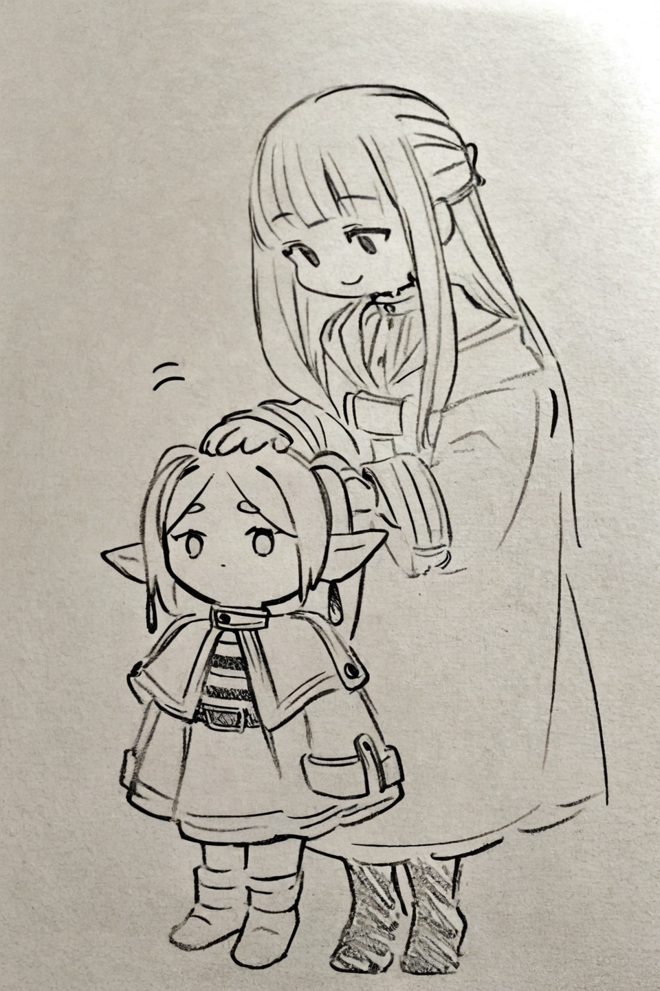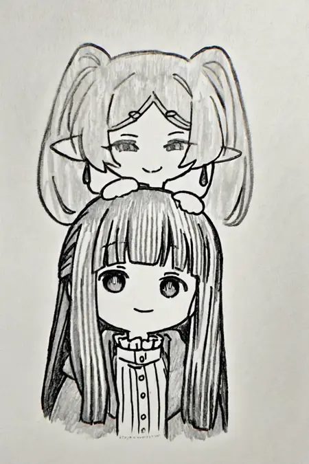 "1girl, frieren, chibi, smile, monochrome, sketch, graphite_(medium), lora:visceral\_sketch\_illustrious:1"