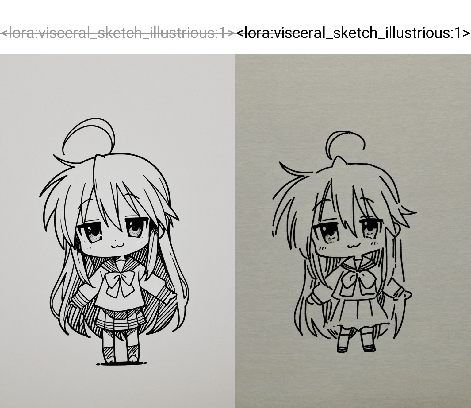 Trained on WAI Illustrious v14.0. This is a subtle LORA to make sketches look like real photographs of drawings on pieces of paper.