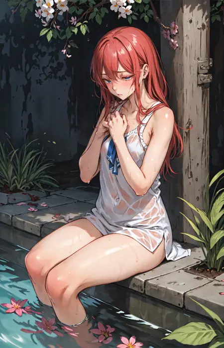 최고 품질, 세부 배경, 소녀, 봄, 수줍음, 솔로, 숨결, 젖은:0.6, 지침, 커다란 가슴, 처진 가슴, 배부른 배:0.4