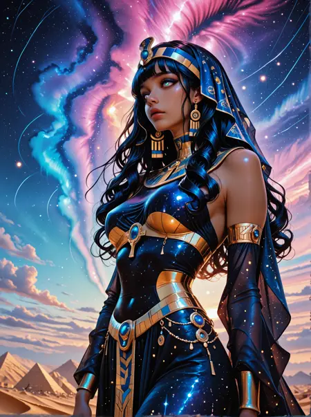 This LoRA brings the rich and visually stunning world of Ancient Egypt to life. It covers a wide range of subjects, from majestic pharaohs and powerful gods to priestesses, mummies, temples, pyramids, and hieroglyphic-filled scenery. The model captures the iconic aesthetics of Egyptian mythology, blending gold, turquoise, lapis lazuli, ornate jewelry, and elaborate costumes into highly detailed images.