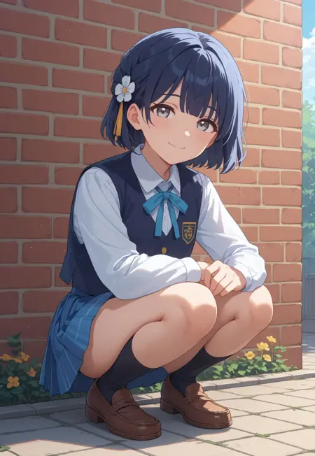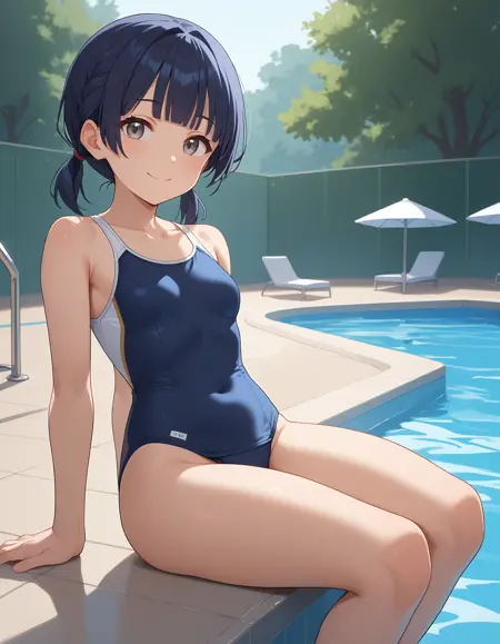 mszhty, short hair, bangs, blue hair, black hair, grey eyes, small breasts