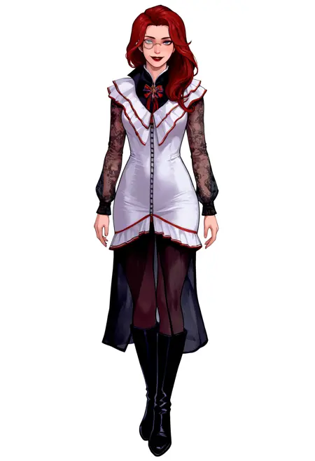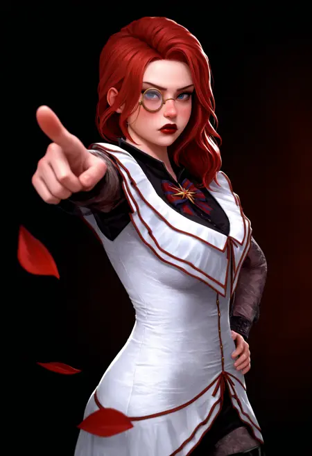 基础提示词:1girl, zana, monocle, red hair, blue eyes, long hair, red lips