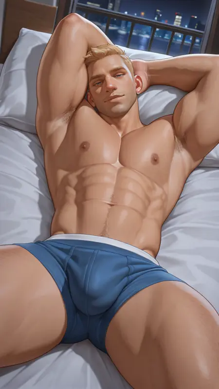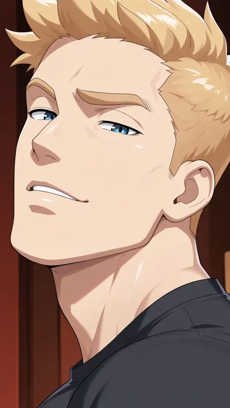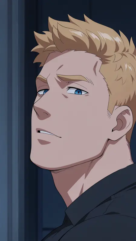 jackm,1boy,mature male, blonde hair, very short hair, blue eyes